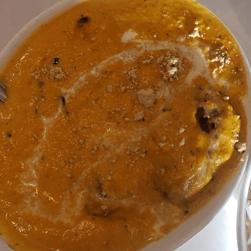 Succulent pieces of chicken cooked in rich tomato sauce with herbs spices and touch of butter then garnished with cream