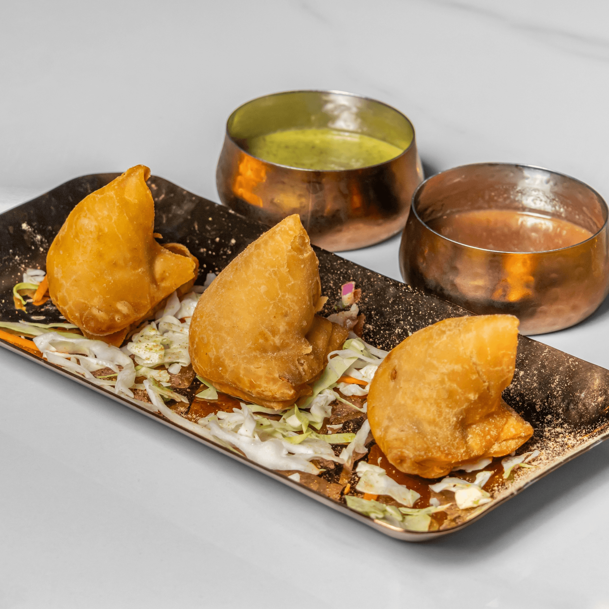 Blend of crispy samosas, tangy chutney, and savory spices