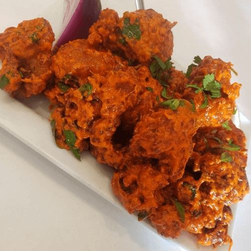 Cauliflower marinated in corn flour batter, deep fried and tossed with an array of spices