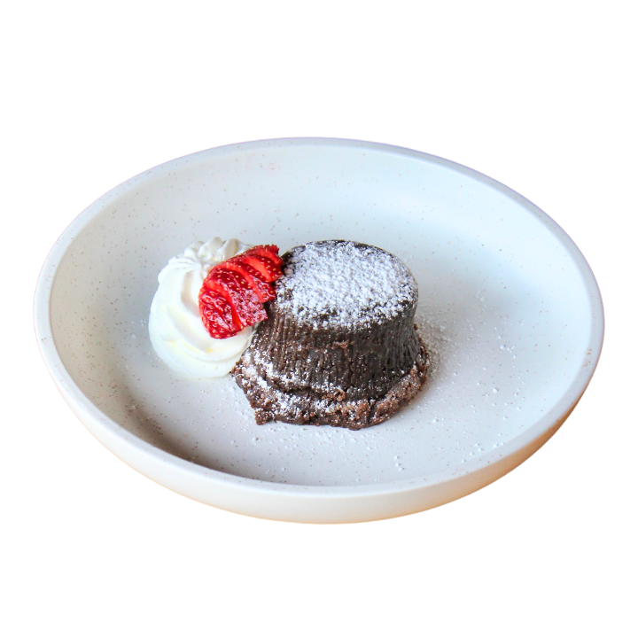 Warm chocolate truffle cake, whipped cream, chocolate ice cream