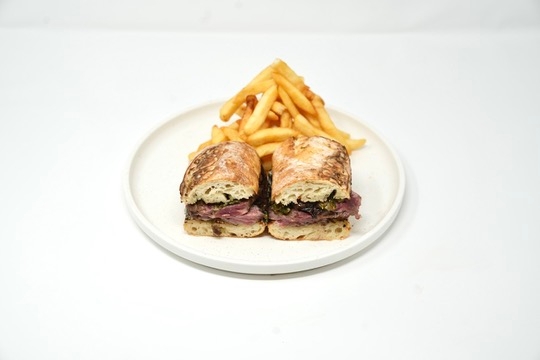 USDA prime hanger, French baguette, chimichurri aioli, maldon salt