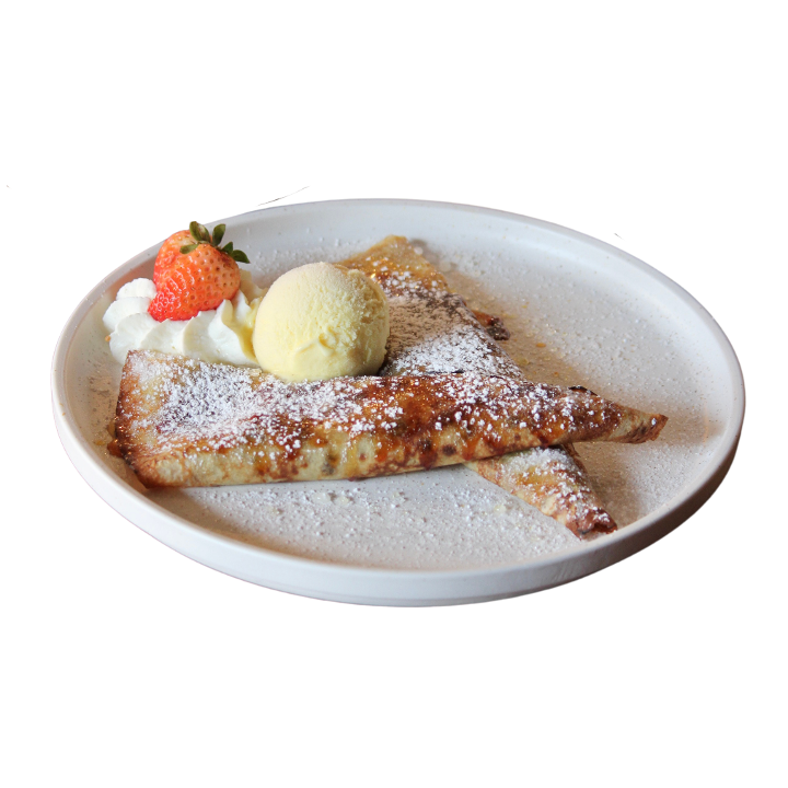 Handmade caramelized dulce de leche crepes, vanilla ice cream
